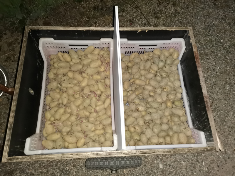 Meine Pflanzkartoffeln liegen auch schon zum keimen...Birgit, Baltic Rose und Goldmarie.