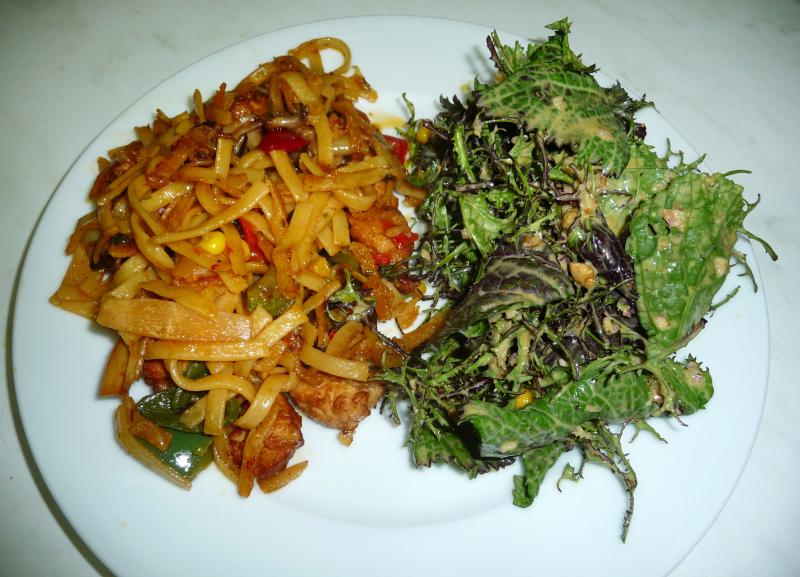 Bami Goreng aus der TK und eigener Asia-Salat mit Walnüssen.