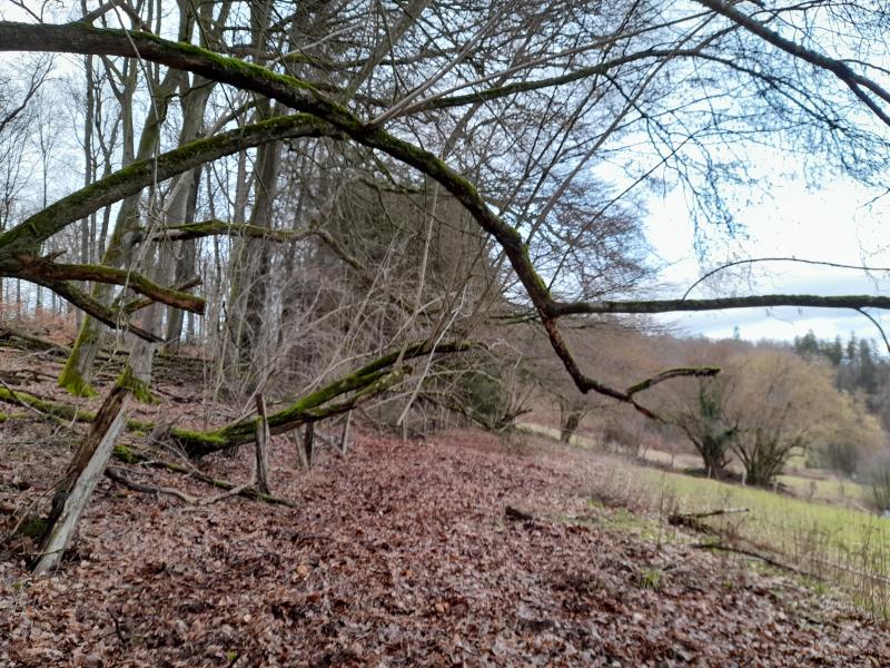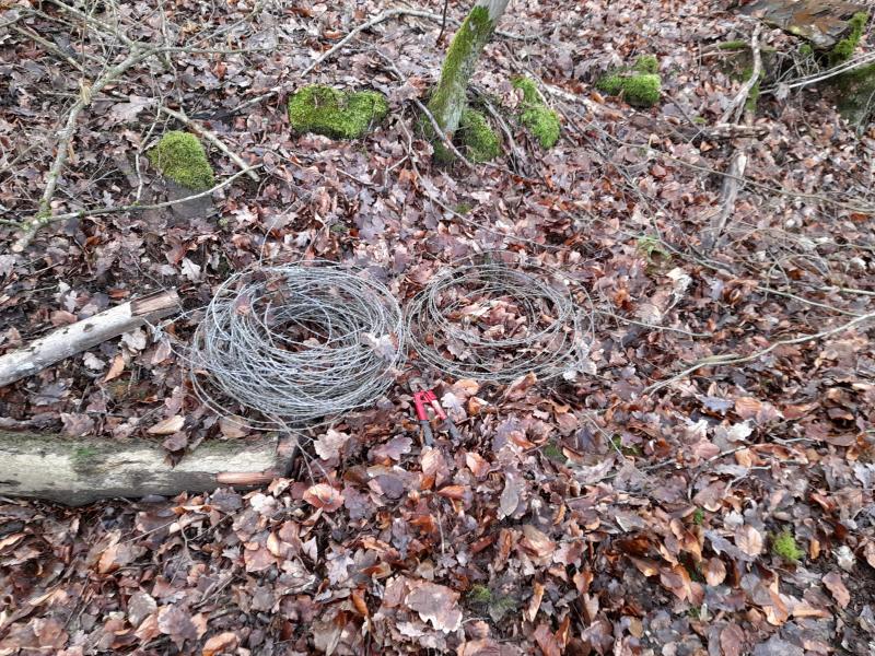 Kontrolle bei den Böcken auf der berüchtigten Pralinenobstwiese: Baumschutz für den neuen Baum abgeladen. Im März hilft mir ein Kumpel die Pfosten einschlagen. Dann weiter Obstbäume beschnitten. Da geht es "nur" darum, dass die Baumschutz-fähig werden. Es gibt Bäume, da weiß ich selbst da nicht weiter. Weil... das hier ist ein nicht von mir gepflanzter Baum. Da kann man sehen, was das für ein Baumschutz ist. Was soll aus solchen Bäumen werden? Und ich stehe dann da mit diesen Krücken und habe Zwiesel unter Kniehöhe. Da geht Baumschutz dann wie?!