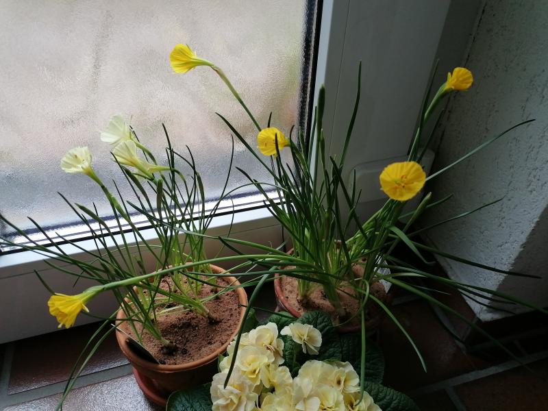 Ich hab kürzlich 2 Töpfchen mit Reifrocknarzissen im Gartencenter erstanden (eine, gelb, eine weiß, Sorte muss ich nachlesen, kann gerade nicht aufstehen, weil die Katze es sich gemütlich gemacht hat).