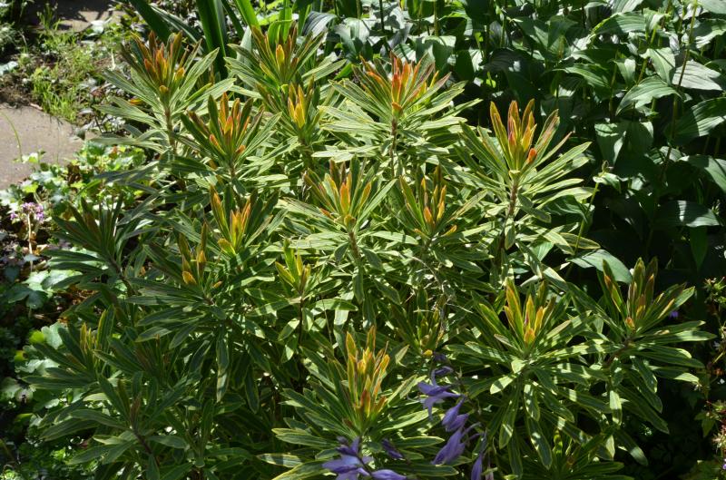 Ich hatte mal Euphorbia cornigera 'Goldener Turm' im Foerstergarten bewundert. Dann habe ich sie in den Garten geholt und sie hat auch noch eine wunderschöne Herbstfarbe entwickelt. Im zweiten Standjahr wurde sie weniger und ist dann im Herbst ganz verschwunden. Auf dem Foto noch in bestem Zustand.