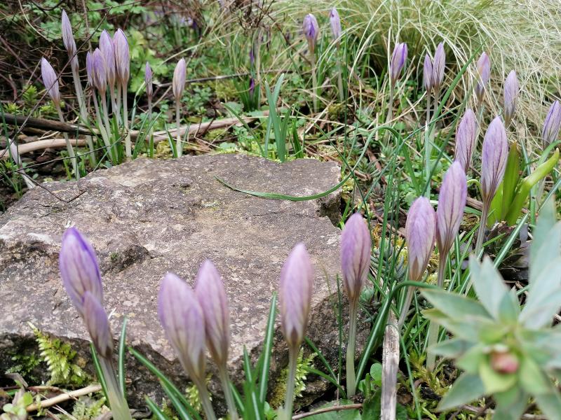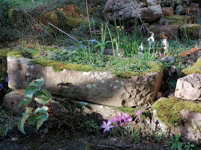 Im "Süden" meines Gartens blüht die Macchie. Iris "Katherine Hodkin" ist sehr dauerhaft und jedes Jahr ein Highlight :D Dahinter Euphorbia rigida. Wie immer, sehr zeitig und eigentlich immerschön.