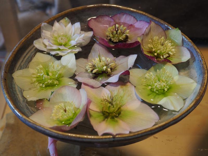 und ich hab einige Helleborus Orientalis Blüten mitgenommen. Ich kann die Pflanzen eigentlich nicht mehr ausstehen. Sie lassen immer die Köpfe hängen, wenn sie blühen. ::) Deshalb werden sie jetzt geköpft. ;D
