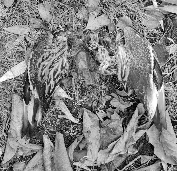 Vom Erpel war noch weniger übrig. :-[ Eine verstörte Ente ist noch da...
