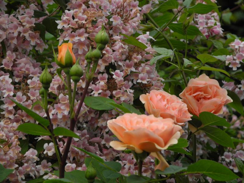 'Charles Austin' vor Kolkwitzia