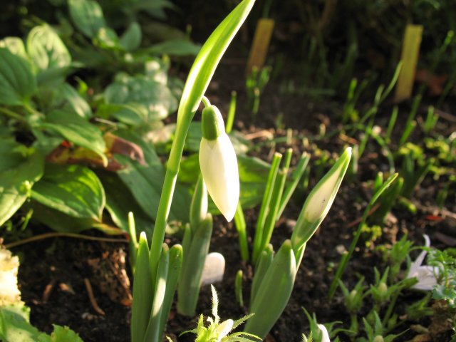 Überall sieht man schon die Schneeglöckchen spitzeln. Hoffentlich hält das milde Wetter noch ein paar Tage an, damit sich die Blüten von 'Faringdon Double' öffnen.