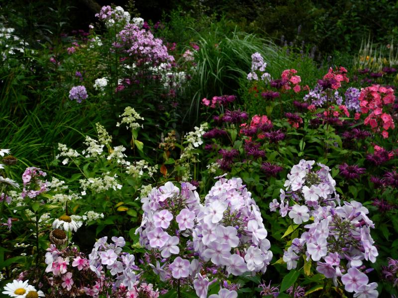 Jetzt gibt es auch ein Sommerbild. Der linke Phlox hat sich im vorherigen Garten von allein ausgesät. Es ist eine stabile Pflanze, die auch bei starkem Regen nicht auseinanderfällt. Deshalb durfte dieser Phlox mit uns in den neuen Garten umziehen.