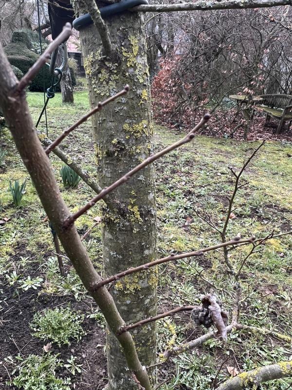 Fothergilla hat relativ kurze Seitentriebe. Ob aber so ausgeprägt und einheitlich kurz? Ich habe auch keinen guten Vergleich zu den Winterknospen.