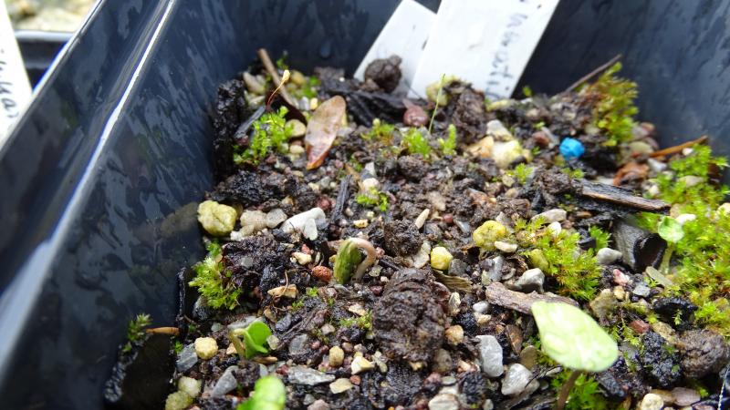 Die Samen von Apo keimen jetzt reichlich. Allerdings von den behandelten kein einziges. Die Keimblättchen sind eher rundlich. Gut zu unterscheiden von E.hyemalis und deutlich später.