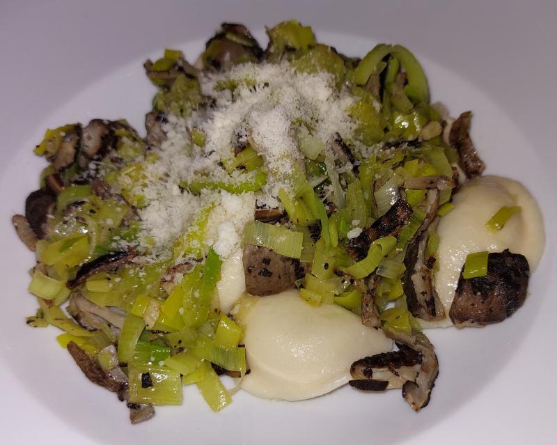Heute habe ich Vareniki mit Porree und Parasolen gemacht. Dazu gab's Parmesan und Endiviensalat.