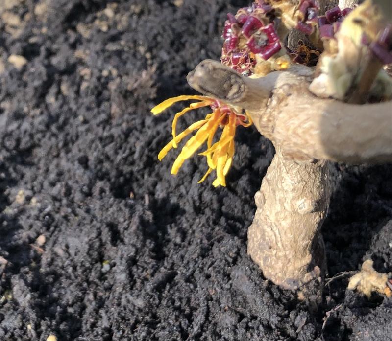 Die Blüten von Hamamelis haben eine ziemlich einzigartige Fähigkeit: Sie überstehen selbst aufgeblüht ziemlich starken Frost, auch Dauerfrost.
