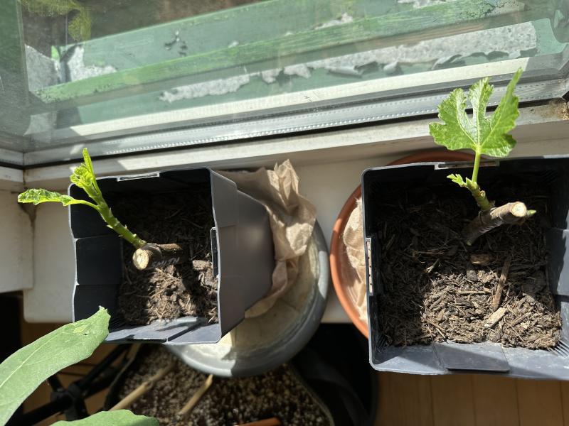 2 Schnitte am unteren Ende mit etwas Clonex Bewurzelungsgel in Compo Sana Bio Anzuchterde biologisch vorgedüngt.