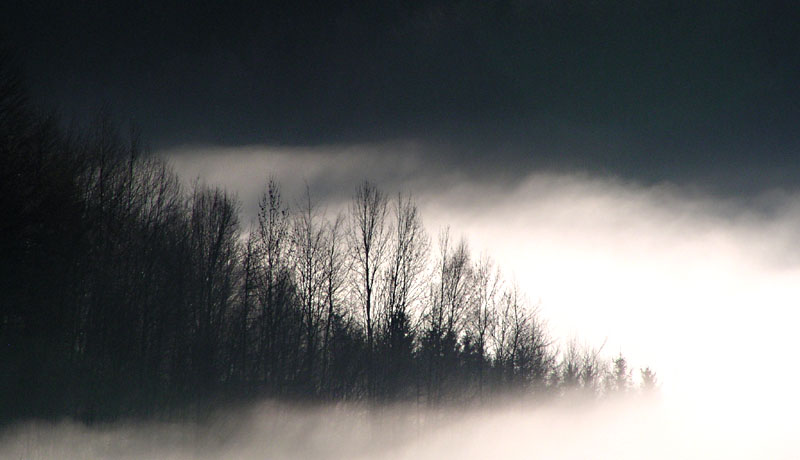 Dabei waren wir da in sicherer Entfernung und in der Sonne. Grusliger ists noch, wenn man mitten drin ist, dort, wo der Nebel die Bäume frisst. Hier ein älteres Bild.