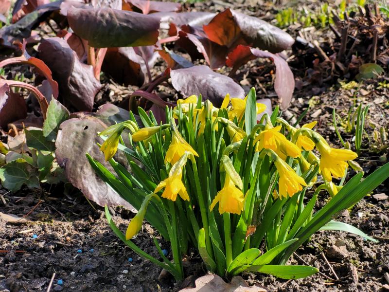 Beim Stöbern im Netz habe ich 'February Gold' gefunden und für die heimische Narcissus pseudonarzissus ssp. lobularis wird eine sehr frühe Blütezeit angegeben. Wir haben jetzt Mitte März und hier blühen die Krokusse und Schneeglöckchen noch.