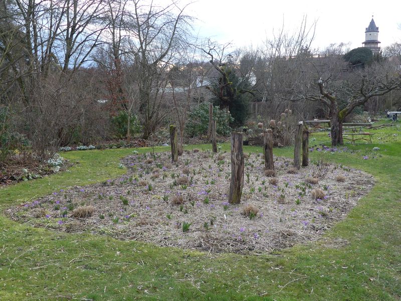 Und noch ein Blick über's zentrale Beet. Die vielen Krokusse sind auf dem Foto nur zu erahnen.