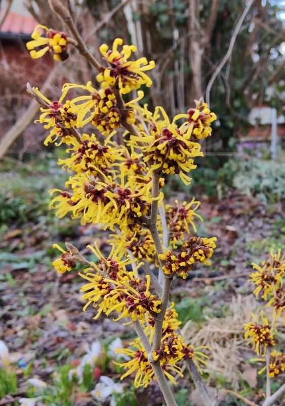 Mit die beste Fernwirkung aller roten Hamamelis und dazu Duft hat 'Twilight'.