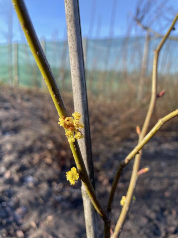 Lindera obtusiloba: Samen gekeimt in Mai 2018, erster Blüte in März 2023.