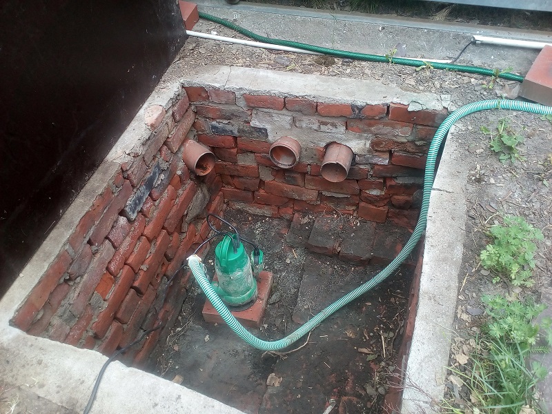 Die Grube habe ich 1997 einfach ausgebuddelt und mit alten Ziegelsteinen aufgemauert. Der Mörtel ist nur punktuell zwischen den Steinen, damit die Fugen nicht komplett geschlossen sind. Den Boden habe ich mit lose verlegten Ziegelsteinen ausgelegt, damit man ab und zu mal den angesammelten Schlamm rauskratzen kann.