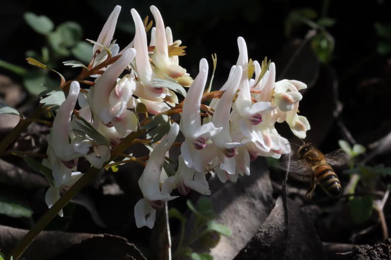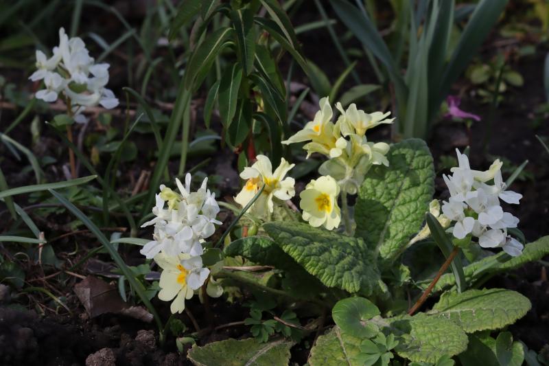 Corydalis marschalliana war im letzten Jahr kaum wahrnehmbar. Jetzt kommen mehrere Pflanzen in Blüte. Der angebliche Gelbton ist bescheiden, kaum ein nennenswerter Unterschied zu weißen C. cava. Aber er blüht viel früher.