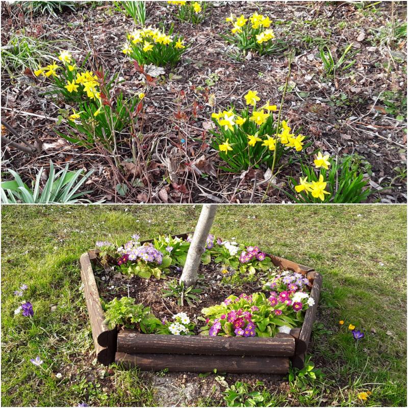 Bei mir blühen derzeit auch vor allem Blumen, Sträucher und Bäume, die ich nie gepflanzt habe: Veilchen (Unmengen heuer, auch in allen Grünanlagen und Wiesen), letzte Schneeglöckchen, Primeln, Leberblümchen, kleine Märzenbecher, Scharbockskraut, Rote Taubnessel, letzte Blüten am Winterjasmin, Mahonie, Kriecherlbäume, Zierquitte, Maibeeren - letztere beiden gepflanzt, die kleinen Märzenbecher habe ich auch vor Jahren aus einem geschenkten Gesteck in den Garten übersiedelt und sie haben sich inzwischen vermehrt und an andere Stellen übersiedelt. Der Lärchensporn steht auch schon in den Startlöchern und beim Bärlauch habe ich erste Knospen entdeckt.