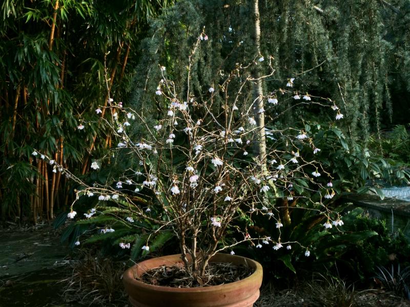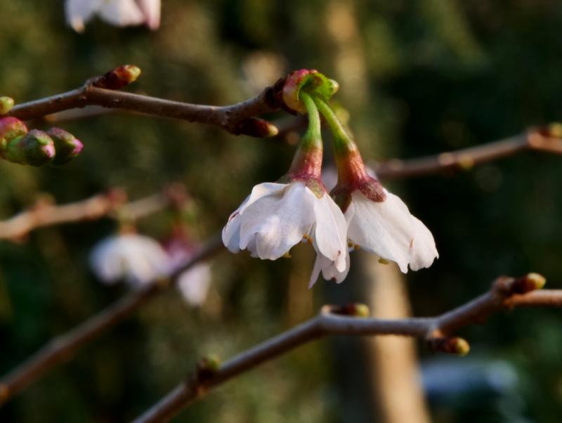 Steht seit einigen Jahren im Kübel. Prunus incisa 'kojou no mai' öffnet jetzt die ersten Blüten.