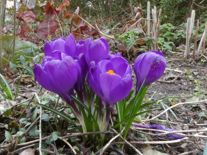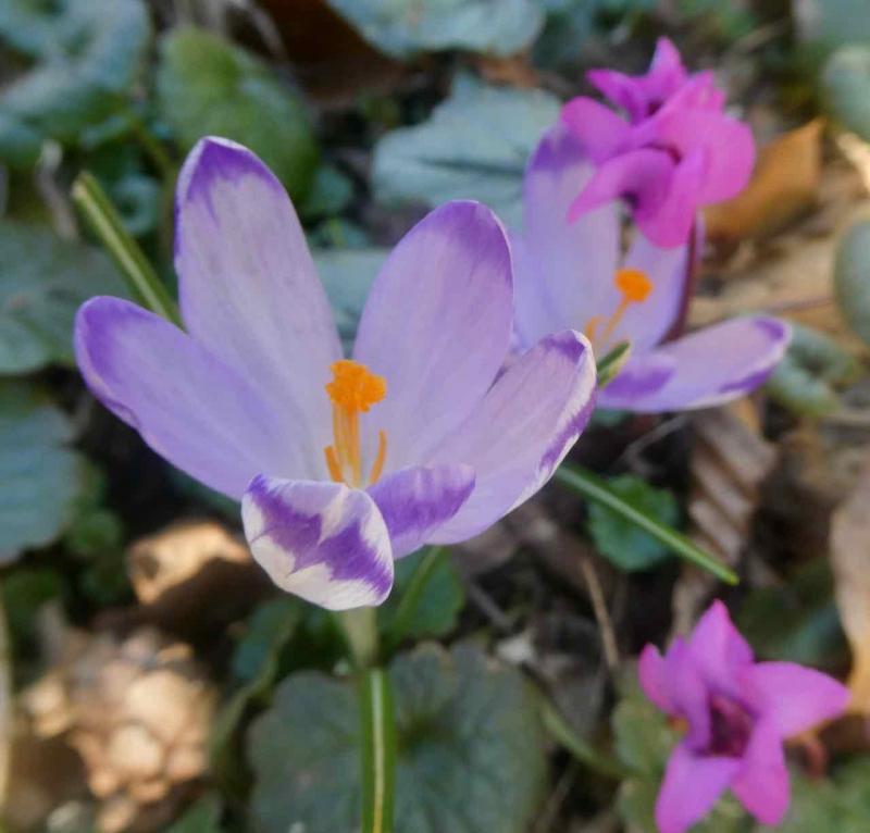 Und dann dachte ich, ich hätte nur einer Version kräftig violetter Crocus vernus im Garten. Diese Version wird sicher bald 20 cm hoch und hat richtig dicke Blüten.