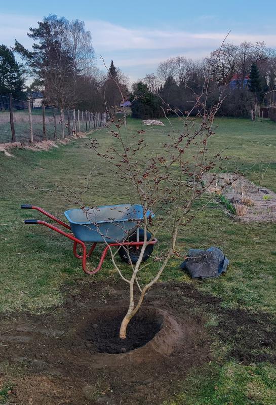 Nun hat auch sie einen Platz im neuen Garten, unweit der kürzlich umgepflanzten Birke. Schauen wir mal, ob sie ihre Chance nutzt.