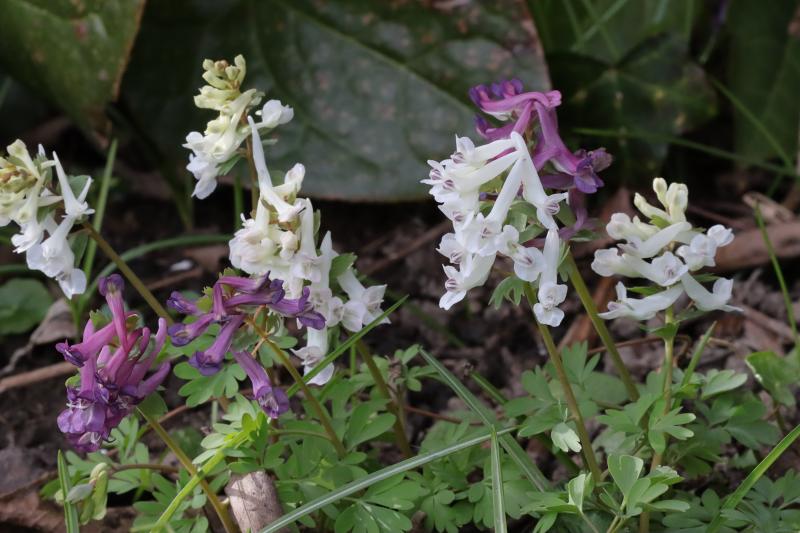 Corydalis marschalliana war im letzten Jahr kaum wahrnehmbar. Jetzt kommen mehrere Pflanzen in Blüte. Der angebliche Gelbton ist bescheiden, kaum ein nennenswerter Unterschied zu weißen C. cava. Aber er blüht viel früher.