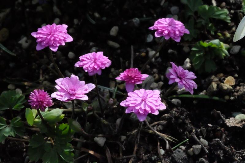 Hepatica nobilis jap. Forrest Hybr. habe ich alle verloren. Einzig Hepatica nobilis var. jap. f. jap. 'Konohana' (2. von oben) von A. Händel bewährt sich seit 2017 im Waldgarten.
