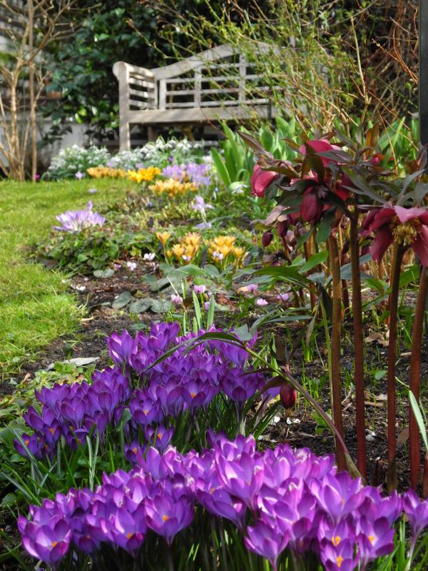 Hier spielt sich die Krokusblüte "nur" in allen Beeten ab, rund um das Haus.
