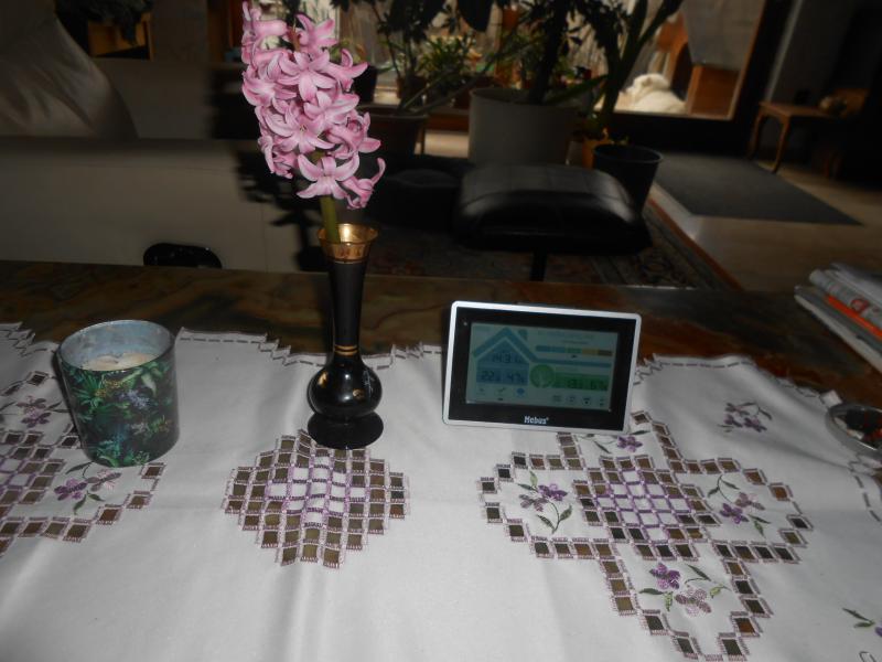 mich bezaubert der Anblick Abends, wenn ich in diesen Raum komme. Ich sehe nur den blühenden Zweig, der so anmutig geschwungen ist, hell beleuchtet. Die Kamera sieht es anders. Noch mehr Zeug aus dieser Perspektive. ;D