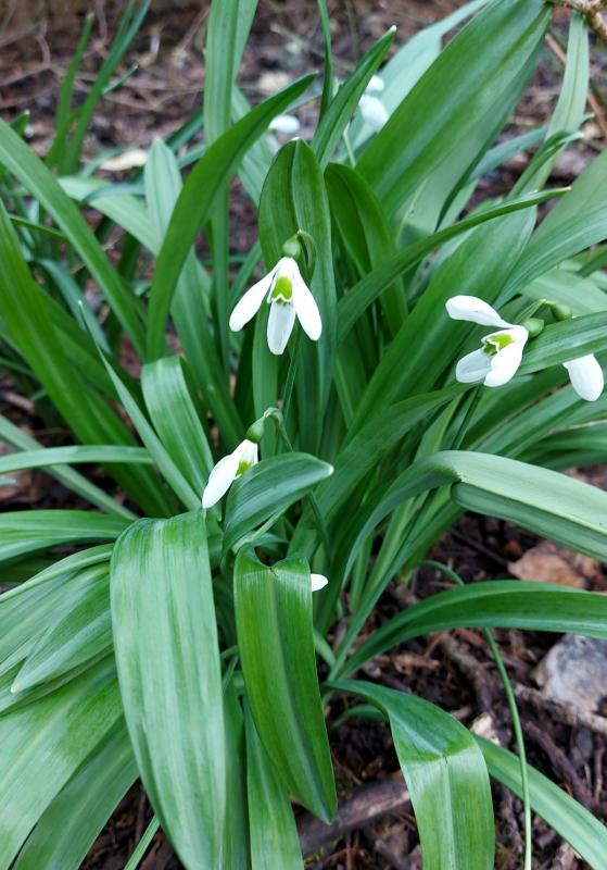 Hier kommt noch eine späte Auslese von G. elwesii, deren Blüten gut über dem Laub stehen.