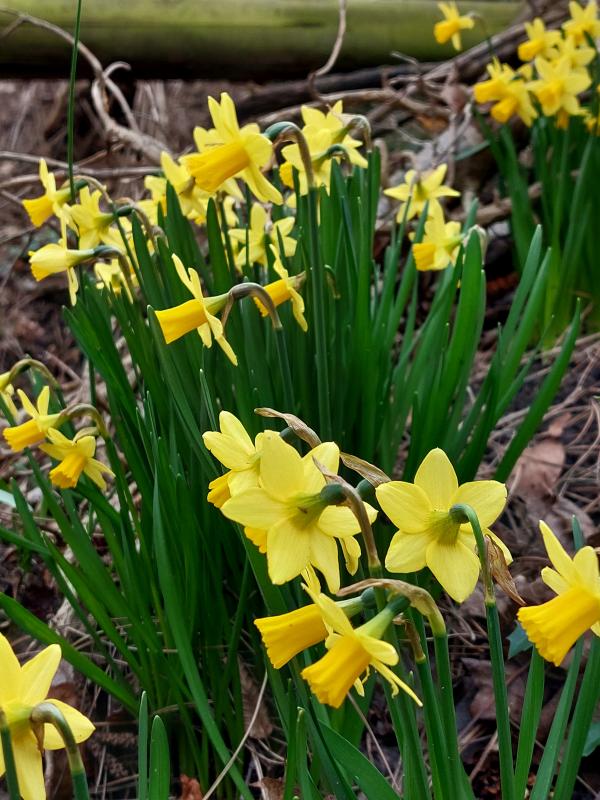 Die Märzenbecher haben dieses Jahr nicht so üppig geblüht wie sonst, wohl wegen der extremen Dürre des letzten Sommers. Diese Form wirkt aber immer so mickrig, ich habe sie einmal als "Hungerform" erhalten.