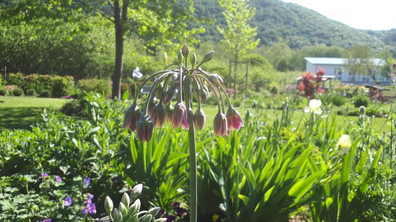 Unten rechts Samenstand von bulgarischem Honiglauch.
