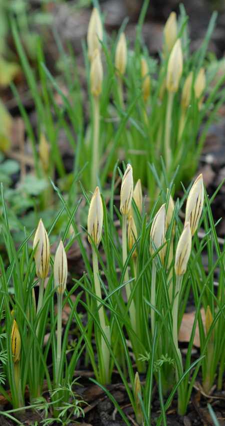 Primeln blühen auch noch - oder schon?Und die Krokusse stehen bereits stramm