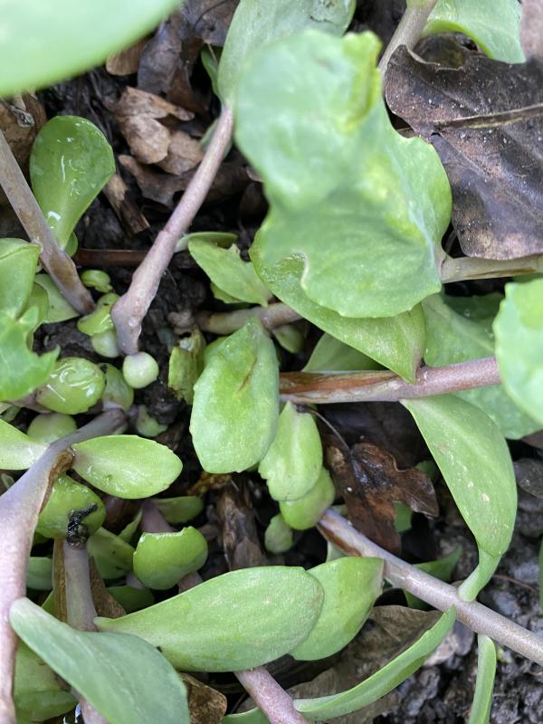 In einem Beet mit Sedum Matrona, nur Sedum, war beim Rückschnitt eine Pflanze, die nur einen kleinen Neutrieb hatte.