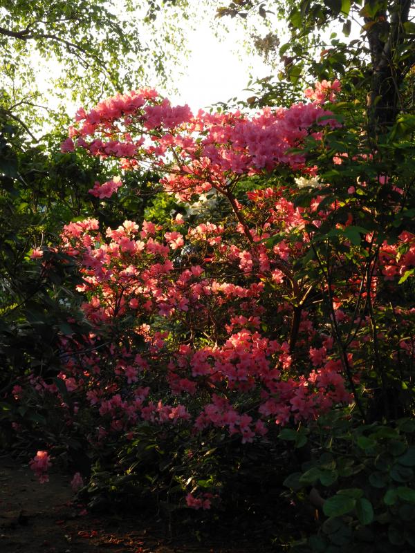 Rhodos machen hier im Lehm Probleme, Azaleen gehen ganz gut, wenn der Sommer nicht gar zu trocken ist.