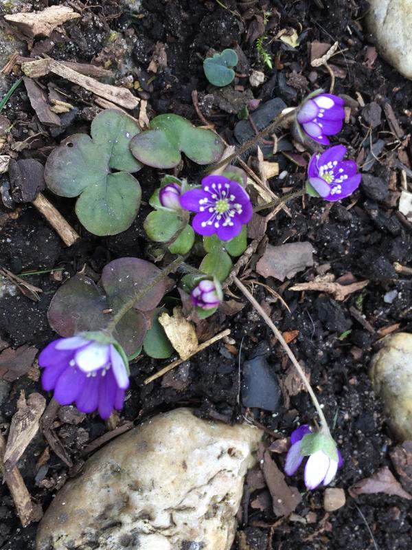 Sehr schöne, kompakte Leberblümchentuffs, helga7 - ohne (störende?) vorjährige Blätter.