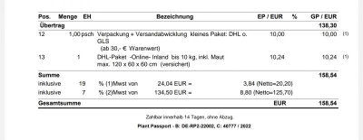Trotzdem ist das ein nicht unerheblicher Kostenfaktor und überdurchschnittlich hoch. Bei mir 20,24 € für ein DHL-Paket.
