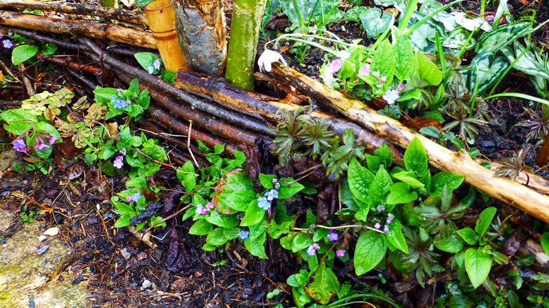Omphalodes cappadocica in den Sorten 'Cherry Ingram' und 'Starry Eyes' (von Ariane) tun sich hier etwas schwer. Sie wachsen eher rückwärts. 'Starry Eyes' ist etwas lebensfroher. Bisher gibt es keine Sämlinge.