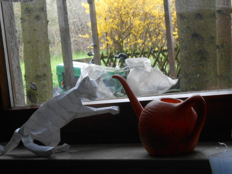 Hier scheint ein Nest voll junge Kohlmeisen ausgeflogen zu sein. Sie versuchen seit heute morgen, irgendwo ins Haus zu gelangen. Erst saß eins vor dem Schlafzimmerfenster, dann auf dem Griff der Haustür, jetzt klopft eins immer wieder an mein "Bürofenster". Sobald ich mich aber bewege und die Kamera in die Hand nehme, ist es weg :(. Waren die so früh dran mit brüten ???