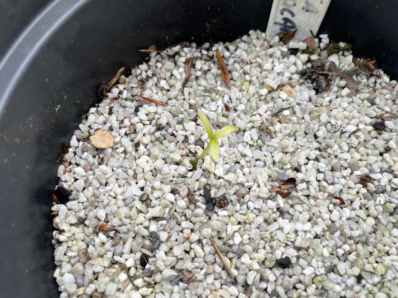 Samen am 14.03. gesammelt und im ungeheizten Gewächshaus ausgesät. Bis zum 30.03. sind einige Samen gekeimt.
