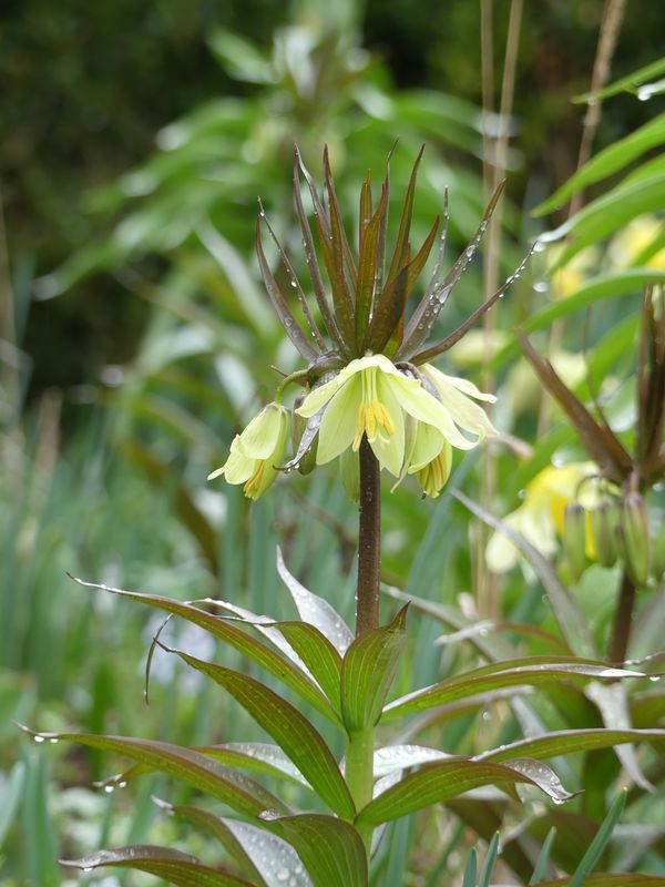 Der Vorteil dieser hohen Fritillarien ist zumindest, dass sie sich deutlich über den Farn darunter erheben, die alten Fritillarien verschwinden regelmäßig unter austreibenden Stauden und immergrünen Farnen.