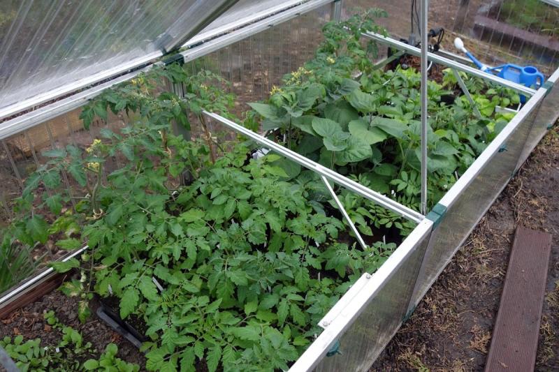 Erste Salatpflänzchen sind unter der Hochbeetabdeckung gepflanzt.