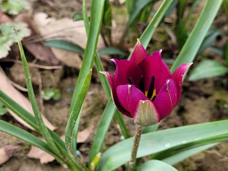 Heute blüht meine erste Wildtulpe, die ich überhaupt jeweils im Garten habe. Hat 50 Jahre gedauert! Eine Tulipa Turkestanica. Schade, dass irgendwer an den Blättern nagt.