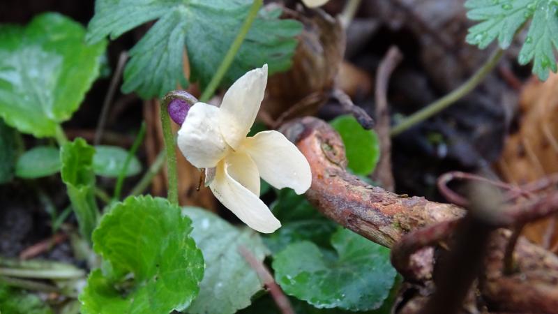 Noch sehr verhalten zeigt sich ein Duftveilchen (Viola odorata 'Sulfurea' )