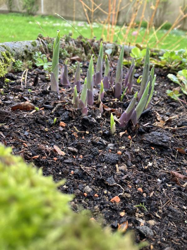 Hier zeigen sich in diesen Jahr viele Hostas extrem spät und teilweise gar nicht. Ich fürchte, einige hat die Dürre im letzten Sommer dahingerafft, andere (vor allen Dingen frisch gepflanze) die diesjährige Extrem-Dauernässe. Vom denen die bereits gute Triebe ausgebildet hatten, haben sich inzwischen einige in grünen Schleim verwandelt, Blue Arrow zum Beispiel, und auch die ‚White Feather‘ ist immer sehr empfindlich was Nässe während des Austriebs betrifft. Andere werden gerade von den Schnecken dahingerafft… oder was oder wer auch immer sonst sich hier erbarmungslos durch die Austriebe nagt… alles sehr frustrierend. 😟