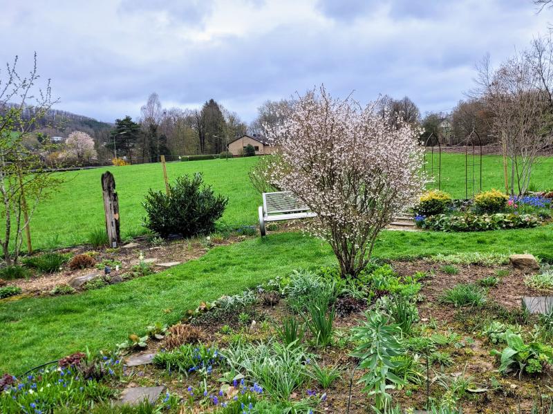 Die Märzkirsche 'Koujou- no- may ' blüht so üppig wie nie... und wir erwarten leichten Nachtfrost. :-[