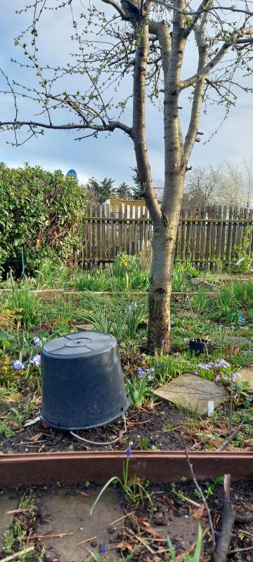 Ich hatte lange keinen richtigen Rhabarber mehr. Vor ein paar Jahren hatte ich ein paar Sämlinge, die allesamt von Wühlmäusen eliminiert wurden. Deshalb das Gitter.