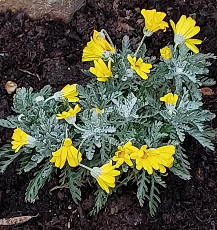 Euryops pectinatus am Teichrand. Das war knapp. Die 2 letzten Nächte -1.